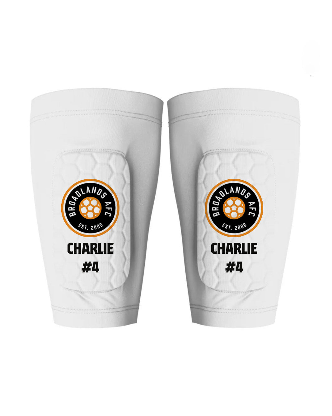 The Deluxe Shin Pads come with shin pad sleeves and also allow for more photos. Whereas the basic shin pads include two photos, typically the club badge and child.